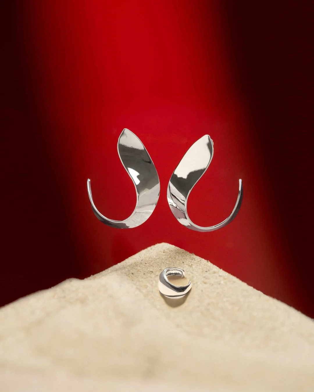 Omarm moderne elegantie met De Daring Dune Set, bestaande uit de prachtige zilververgulde Lunar oorbellen en de gedurfde zilververgulde Ayra ear cuff. Deze stijlvolle set is een perfecte balans tussen zachtheid en moderniteit. De Lunar oorbellen vangen de serene schoonheid van de maan, en voegen een elegante touch toe aan je verschijning, terwijl de Ayra ear cuff een gedurfd, edgy element introduceert. Ervaar meer sprankeling voor minder, terwijl je jouw stijl versterkt met De Daring Dune Set.