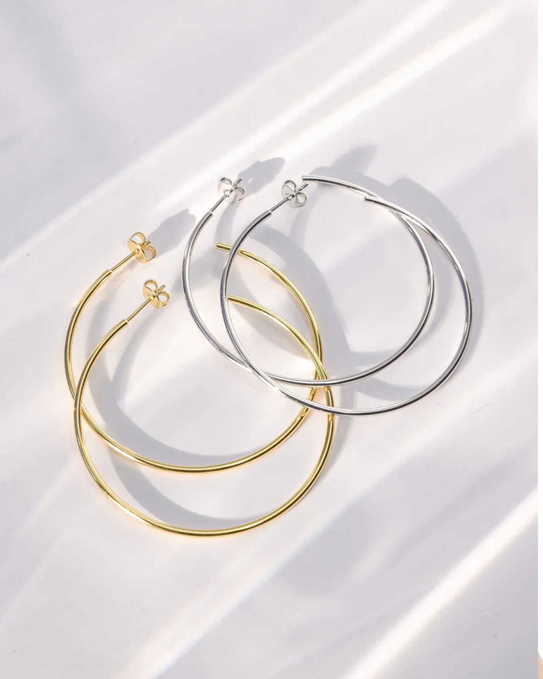 De perfecte basic en tijdloze gold plated oorringen. Deze must-have oorringen zijn onmisbaar in je sieradencollectie. Ze zijn overal mee te combineren en maken je look helemaal af. Hou jij van een minimalistische en vrouwelijke look? Draag dan deze oorbellen met een oorknopje, bijvoorbeeld de Essential oorknopjes.